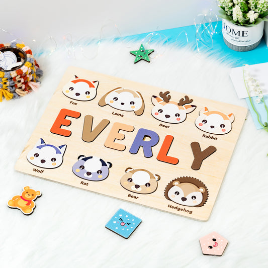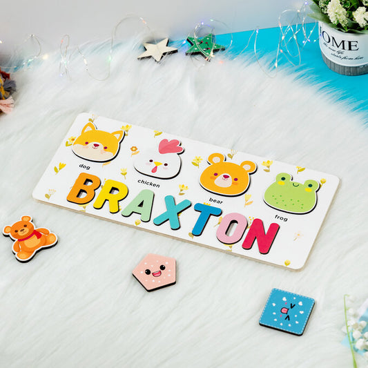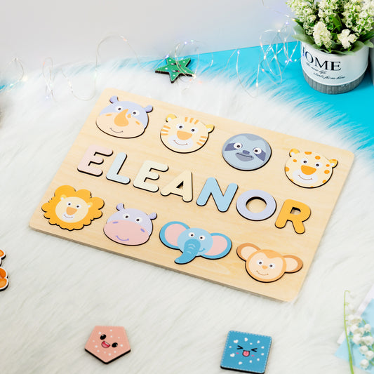 Personalized Baby Girl and Boy Animals Wooden Name Puzzle