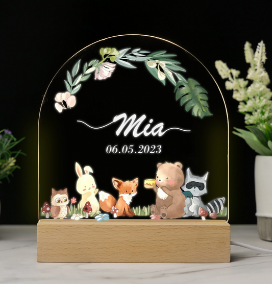 Custom Baby’s Animals Name Night Light