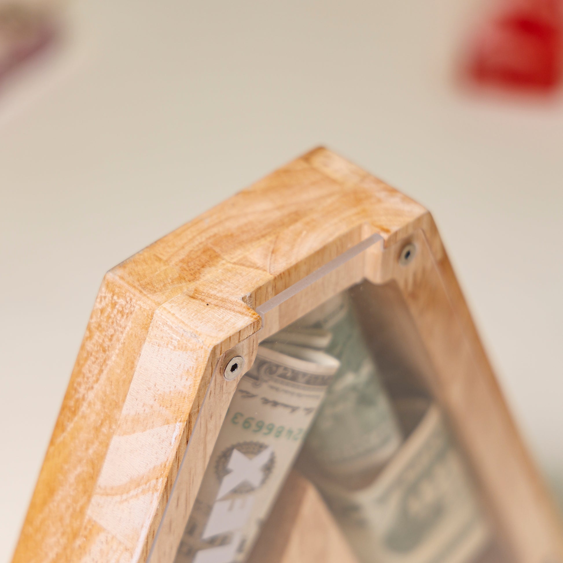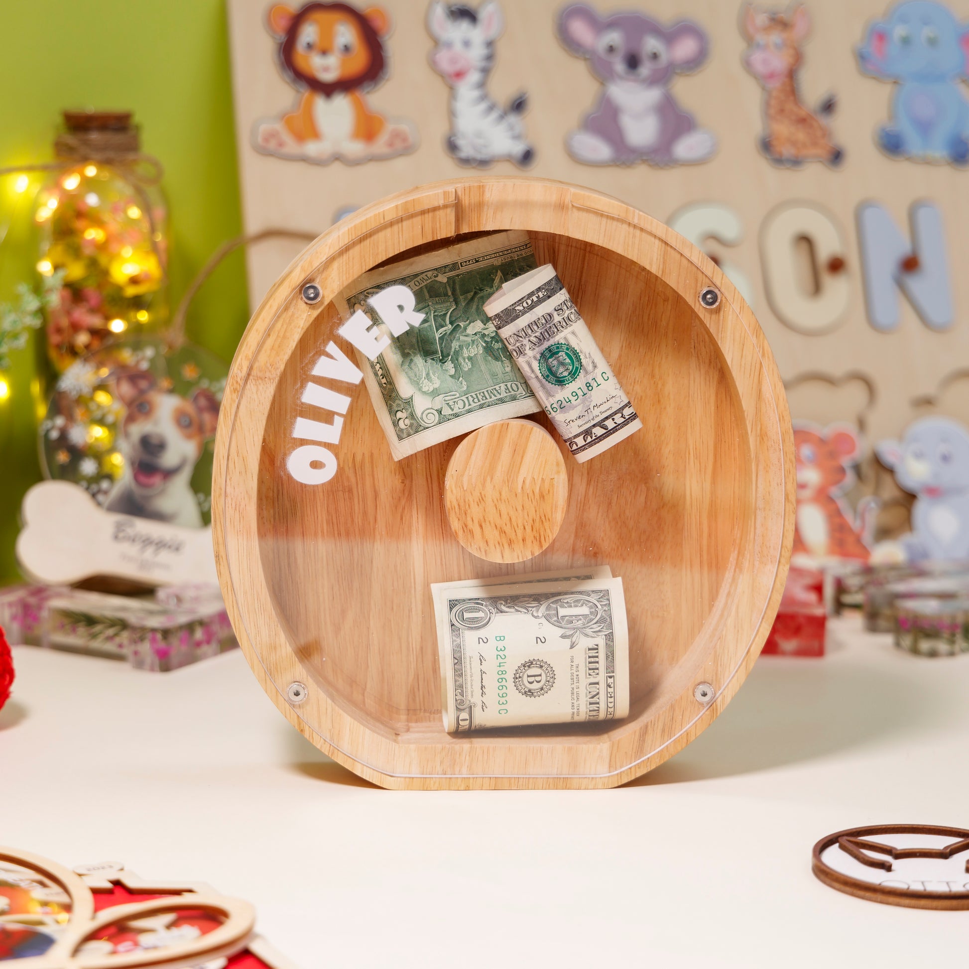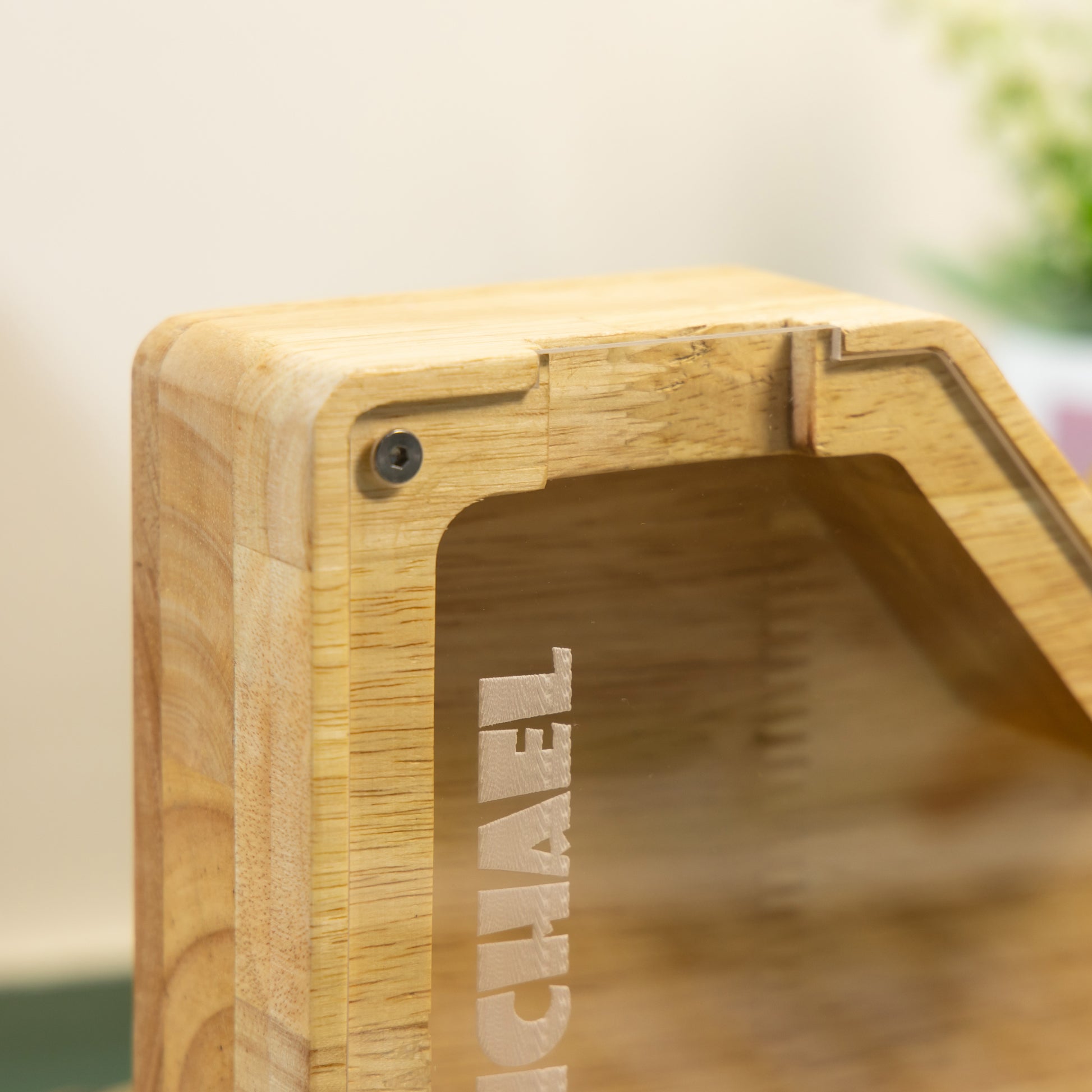 💸 💸 💸 Save up in style with our Personalized Laser Cut Wooden Acrylic Piggy Bank. This charming money box is not just a place to keep your coins; it's a personalized keepsake crafted with precision and care. Made from high-quality wood and acrylic, this piggy bank adds a touch of whimsy to any room while teaching the value of saving money.