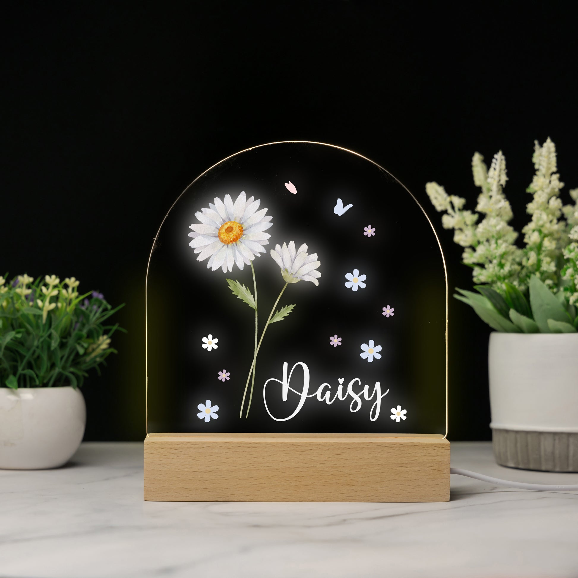 🌙 🌙 🌙 Enhance your child's space with our Custom Birthflower Acrylic Name Nightlight. This unique nightlight features your child's name beautifully engraved alongside delicate illustrations of their birthflower on high-quality acrylic. The soft, warm glow creates a cozy ambiance, ideal for bedtime stories and sweet dreams.
