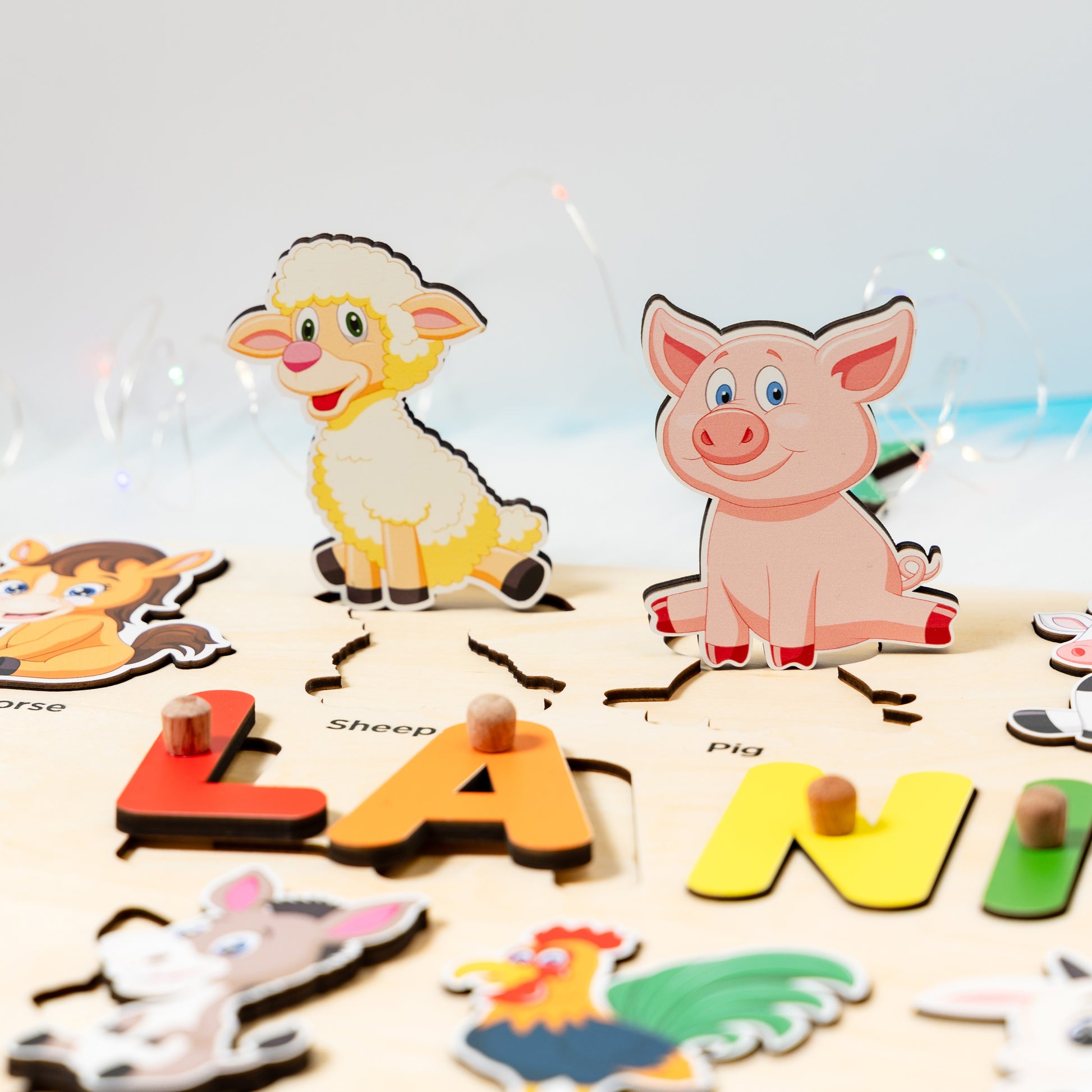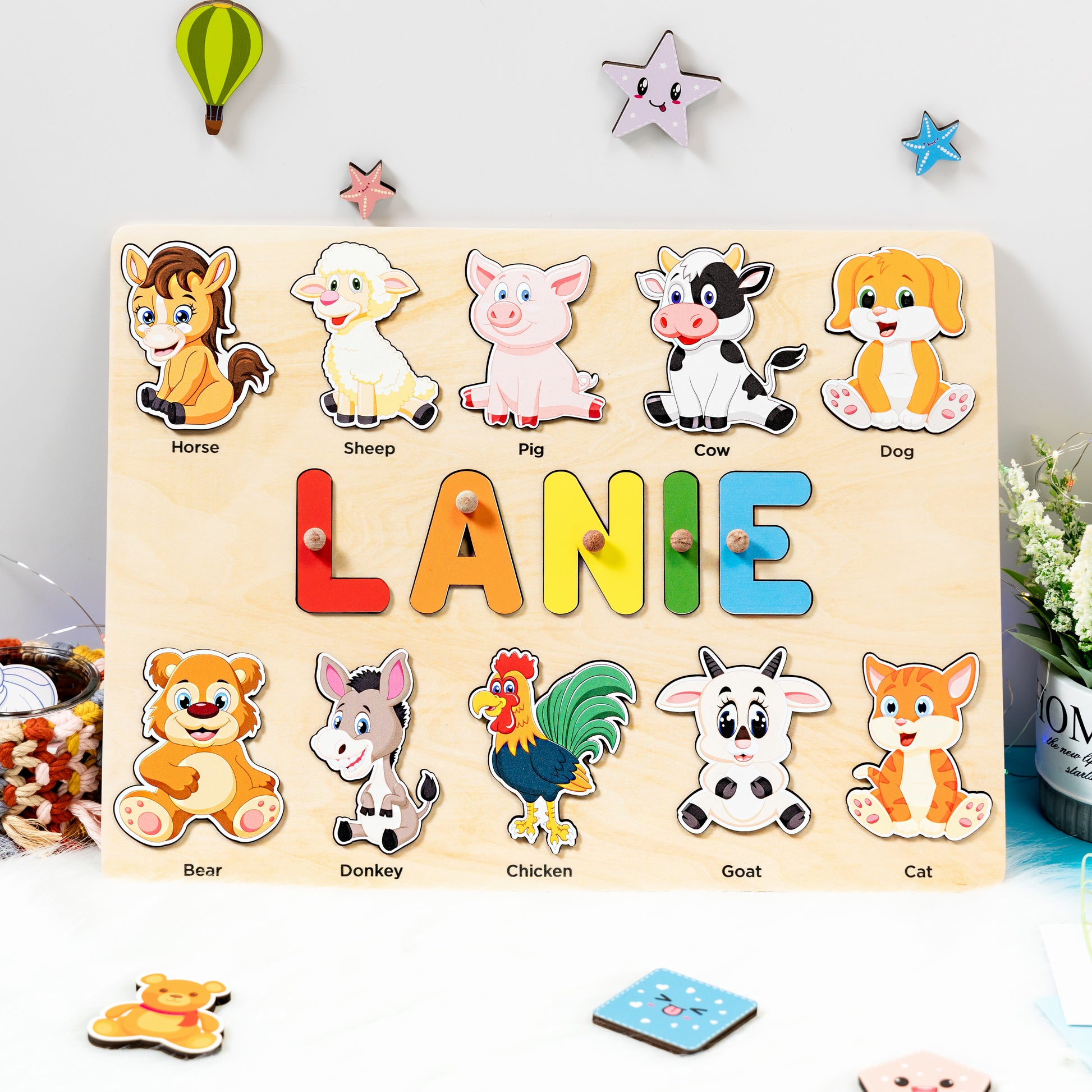 Personalized Baby Girl and Boy Animals Wooden Name Puzzle