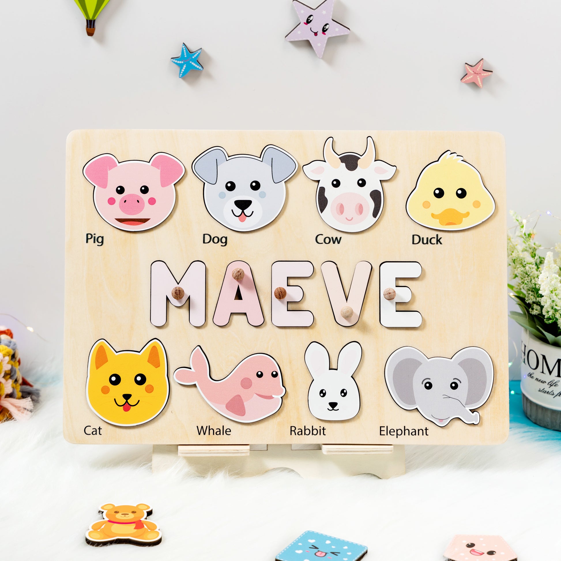Personalized Baby Girl and Boy Animals Wooden Name Puzzle